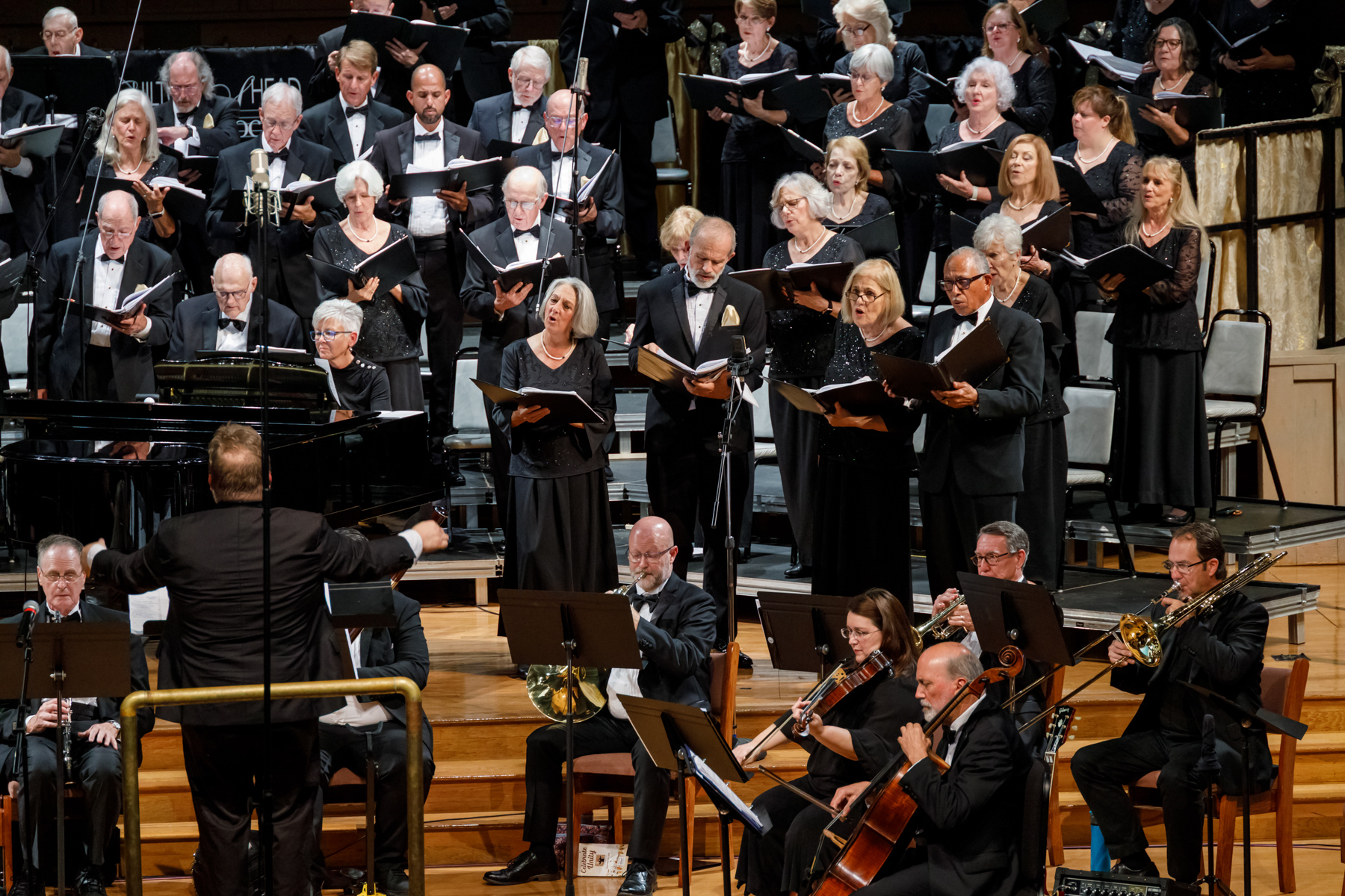 An orchestra of professional instrumentalists as well as soloists are featured in our concerts. A concert may total over 125 musicians (instrumentalists and singers) for audiences up to 900 strong. Concert performances range from Opera to Broadway, Classical to Pops, as well as commissioned works by world-class composers. The 75+ voice ensemble presents up to four concerts per season, including a traditional holiday concert and a Memorial Day weekend concert celebrating America and honoring our Armed Forces with patriotic music.